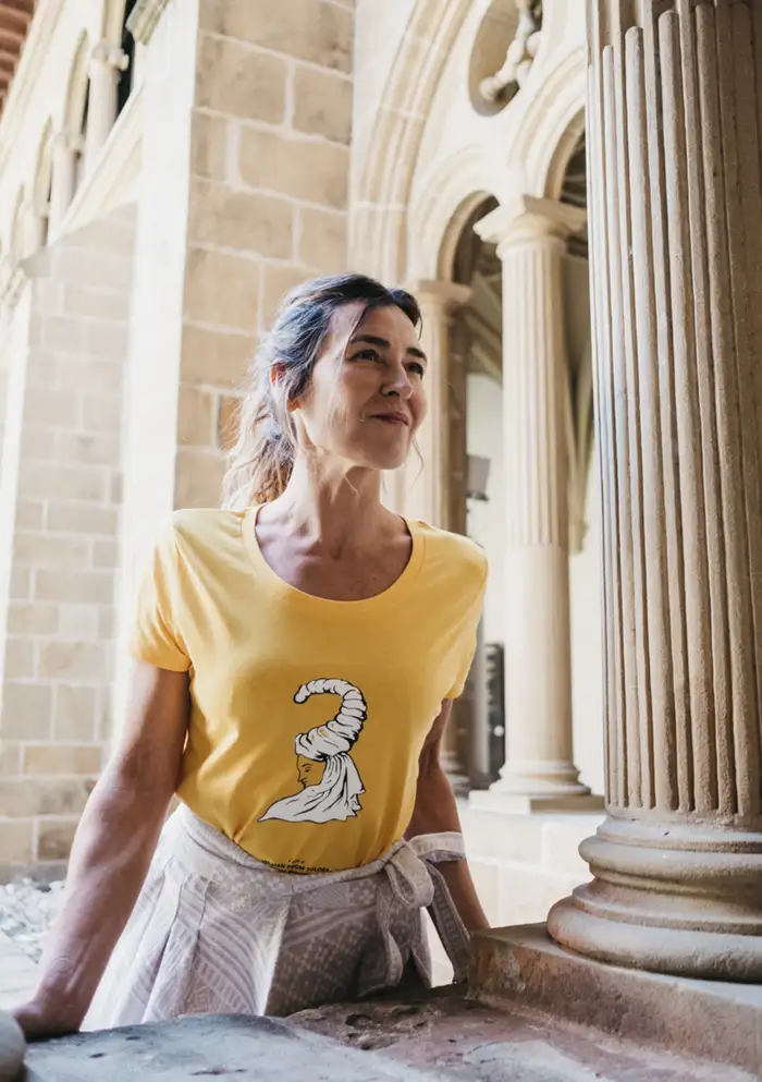 Fuera de stock Tienda CAMISETA BASQUE SINGLE WOMAN MUJER BKK-SIN-A 49,00 € Camiseta de algodón orgánico GOTS. Disponible en modelo unisex y de mujer. La imagen de la camiseta parte de una ilustración de una mujer soltera vasca del siglo XVI. Combina genial con nuestra falda GONA GORRI y una chaqueta KAIKU. Prenda serigrafiada con mimo con tintas ecológicas en Tolosa (Gipuzkoa). Confeccionada en Bangladesh bajo el sello Fair Wear. View 0T T1 T2 T3 T4