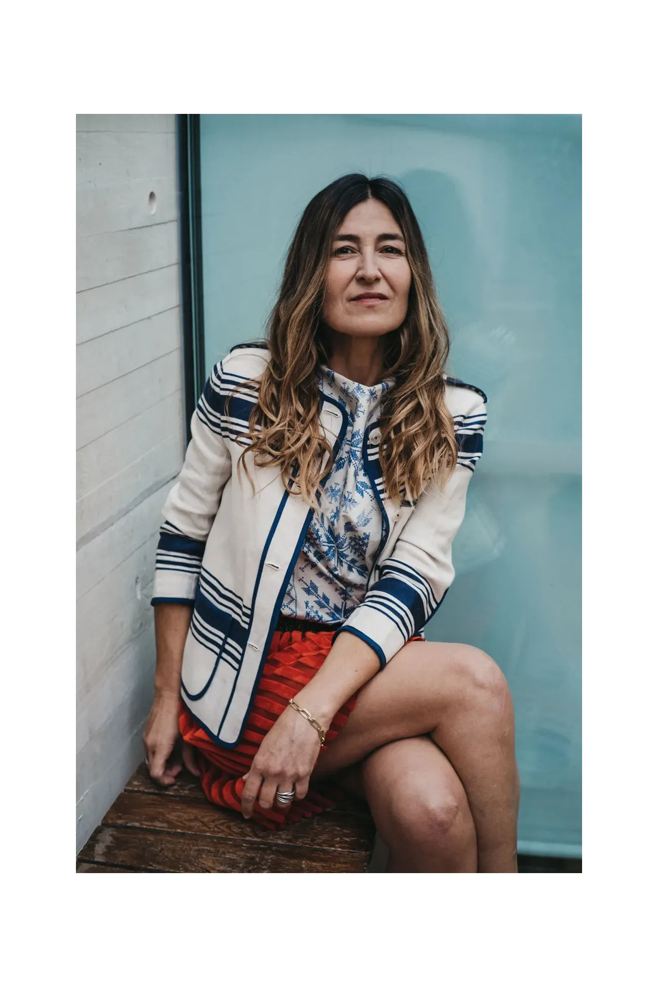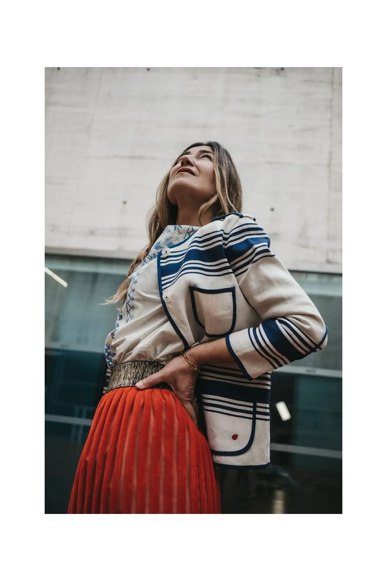 Chaqueta kaiku de lino, con un aire moderno y original. Corte recto y manga francesa. Rematada con vivos de algodón, en el interior y en el exterior. El estampado de rayas es originario del País Vasco francés.