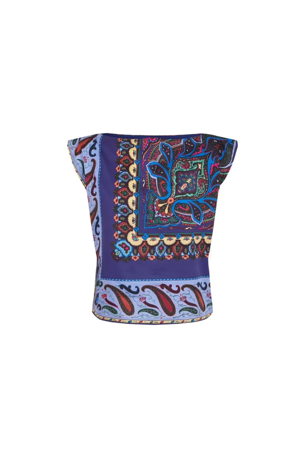 Top de algodón estampado con motivo inspirado en los tradicionales pañuelos de cashmere hecho en colaboración con el artista Garikoitz C. Murua.