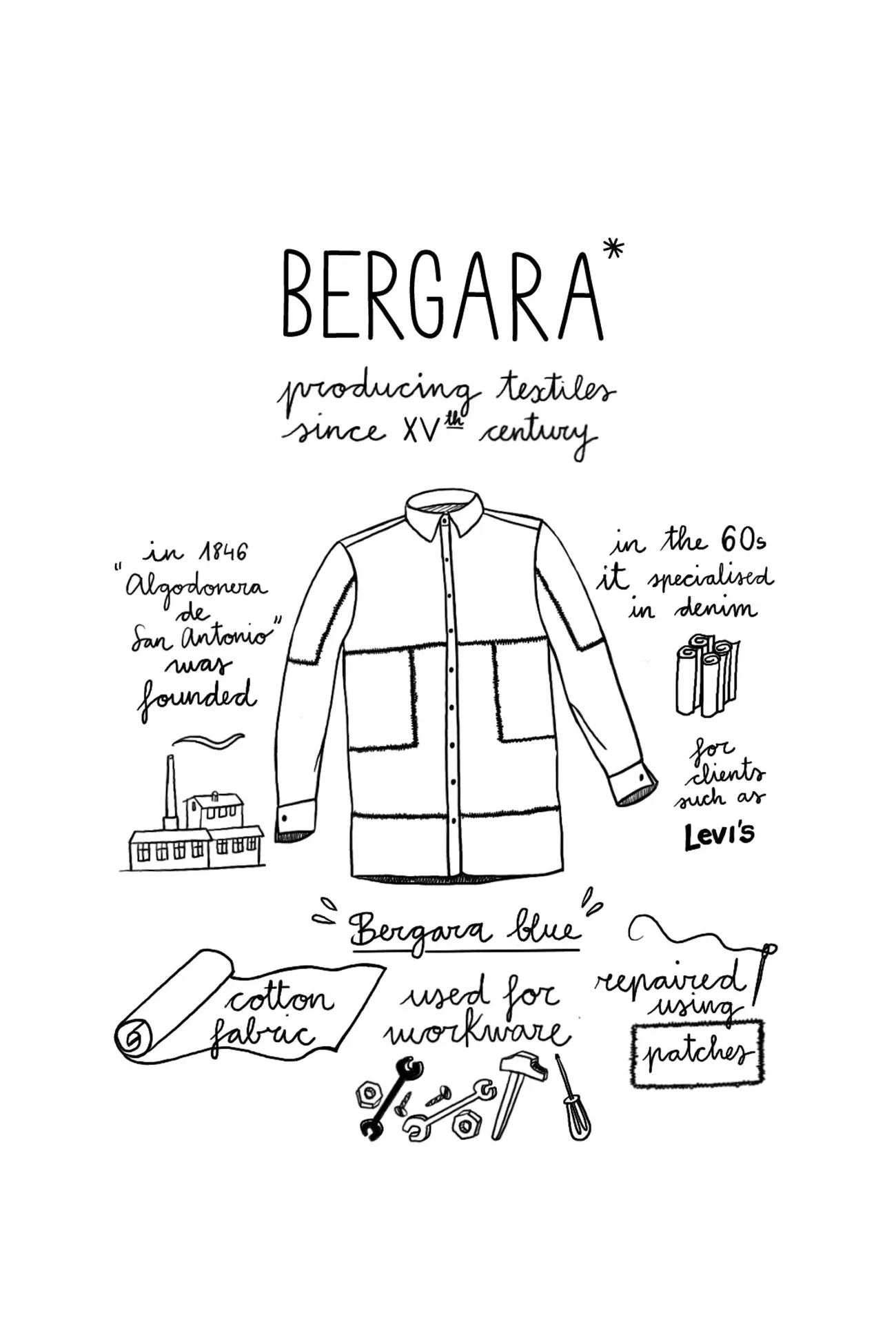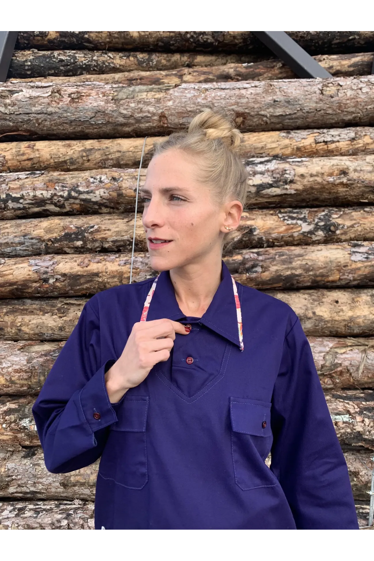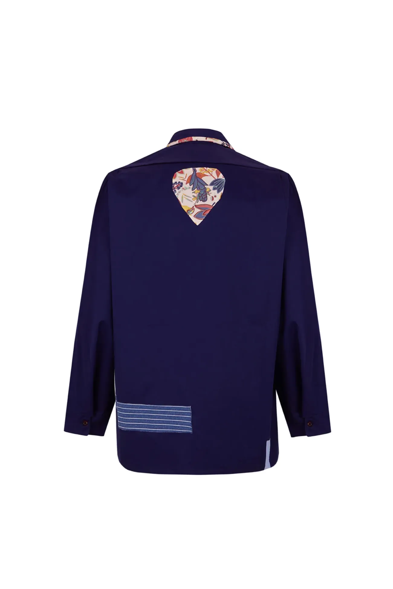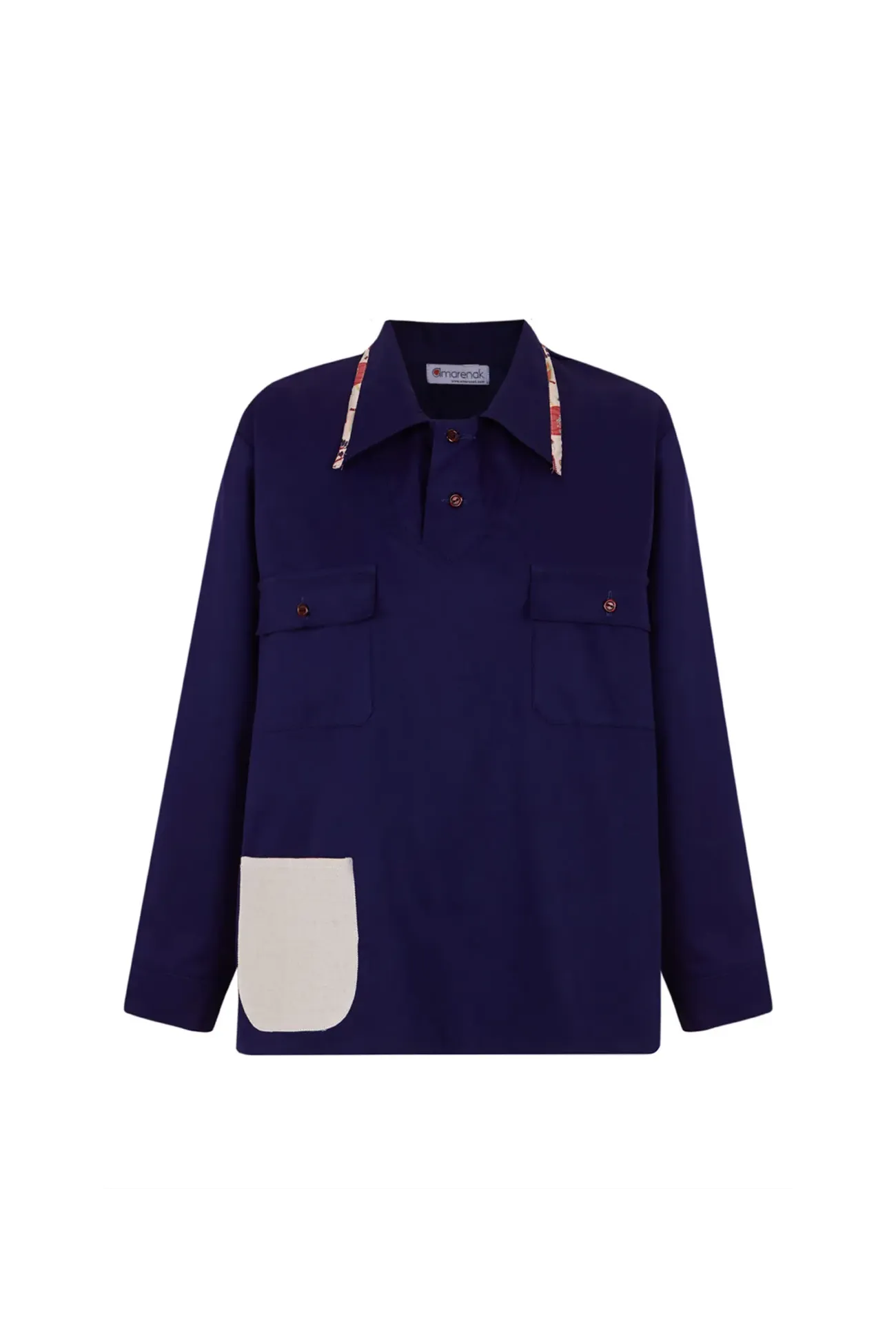 Camisa original azul BERGARA de algodón. Prenda unisex con cuello y 2 botones. Prenda eco-diseñada, customizada utilizando retales sobrantes de nuestras colecciones anteriores, inspiradas por la ropa de trabajo utilizada hace más de 100 años en el País Vasco. Por esta razón, puede que la prenda que recibas no sea exactamente igual que la de la foto.
