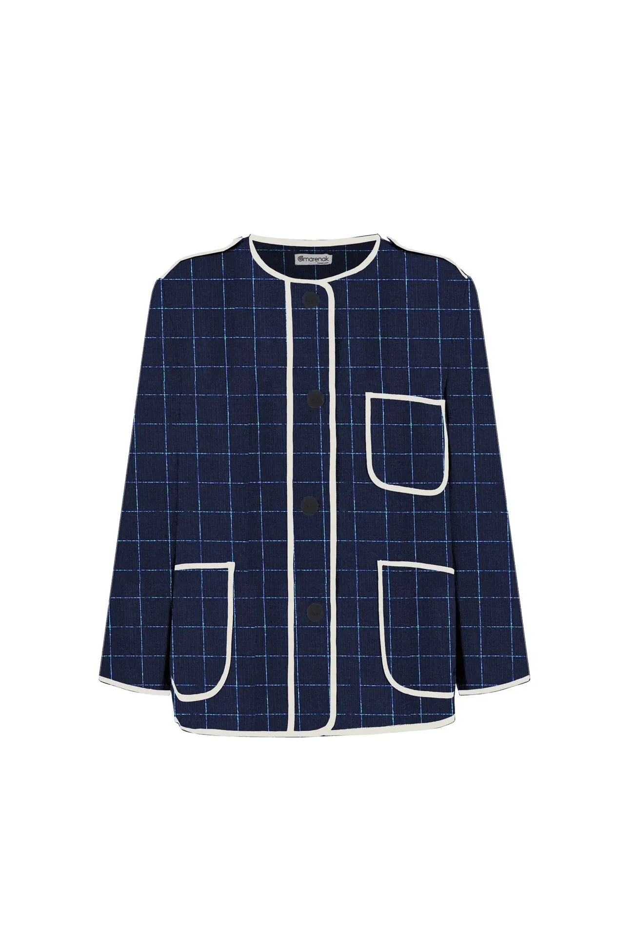 Chaqueta Kaiku LAU azul marino a cuadros, diseño vasco exclusivo hecho en algodón orgánico en Euskadi.